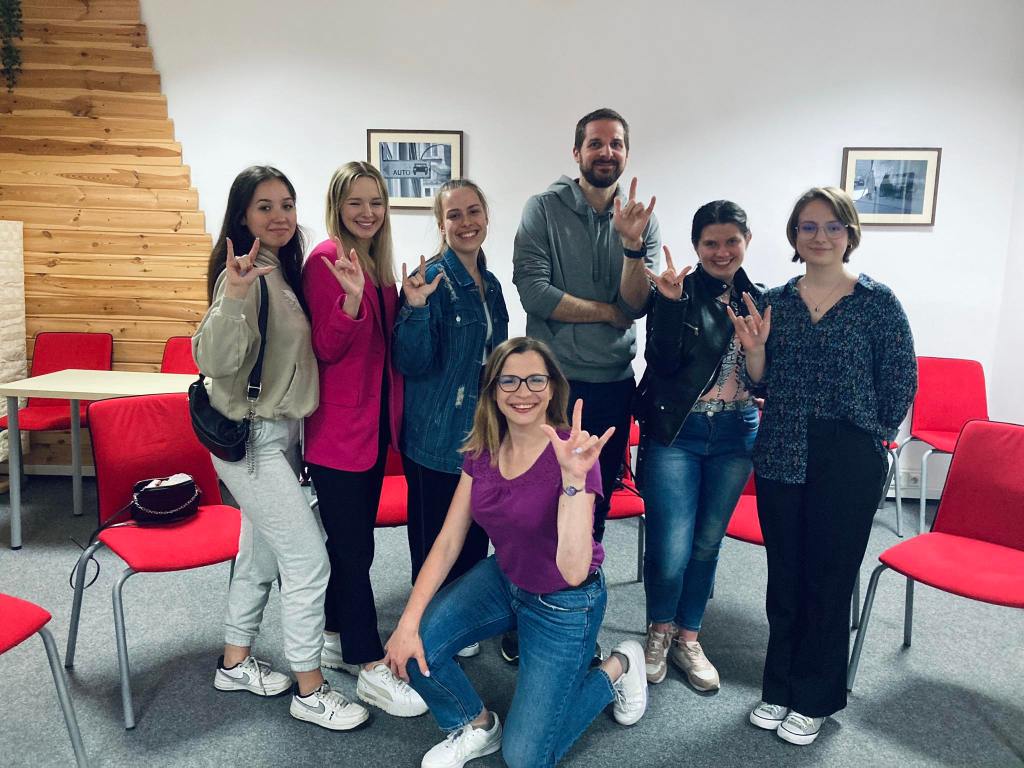 Zapraszamy na kursy polskiego języka migowego (PJM), które wspieramy organizacyjnie. Kursy rozpoczynają się regularnie w marcu i październiku. Najbliższe nabory do grup na poziomie A1, A2 i B1 rozpoczną się w grudniu 2025 r.