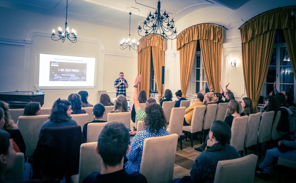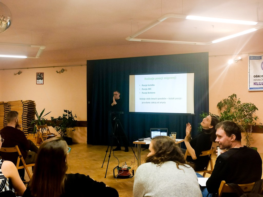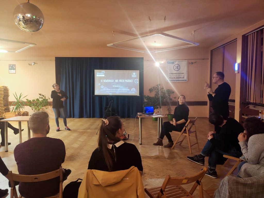 Noc Poezji Migowej to wydarzenie podczas którego poezję w języku polskim łączymy z poezją języka migowego. Za nami VII edycji zrealizowanych we współpracy z krakowskimi instytucjami kultury, trzy ostatnie z Centrum Kultury Podgórza.