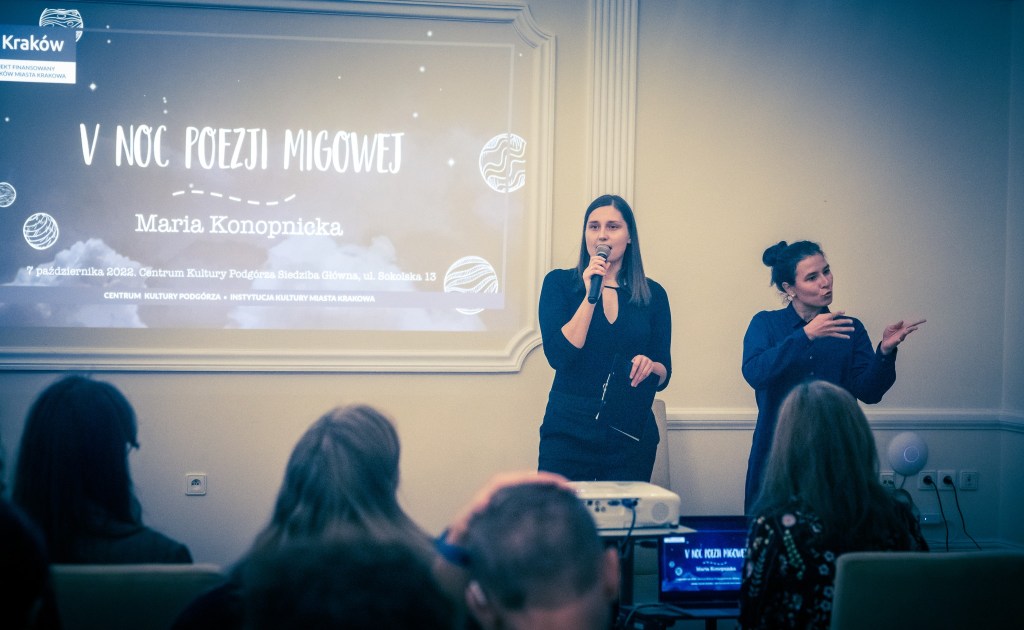 Podczas V Nocy Poezji Migowej poezję Marii Konopnickiej połączyłyśmy z poezją języka migowego. Okazja była nieprzeciętna – w roku 2022 obchodzone były 180 urodziny Marii Konopnickiej, poetki, nowelistki, krytyczki literackiej, społecznej aktywistki, czołowej reprezentantki epoki pozytywizmu.