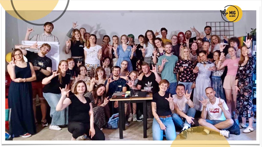 Zapraszamy osoby Głuche, słabosłyszące i słyszące uczące się, zajmujące lub zainteresowane językiem migowym. Niezależnie od tego czy znasz biegle PJM czy dopiero się uczysz – możesz przyjść i pomigać z nami!